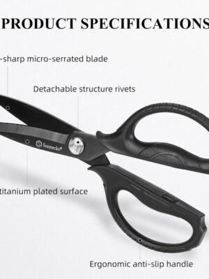 Sunnecko Kitchen Scissors All Purpose Heavy Duty Scissors Titanium Coated, Food Scissors Dishwasher Safe, Micro Serrated with Detachable Blades