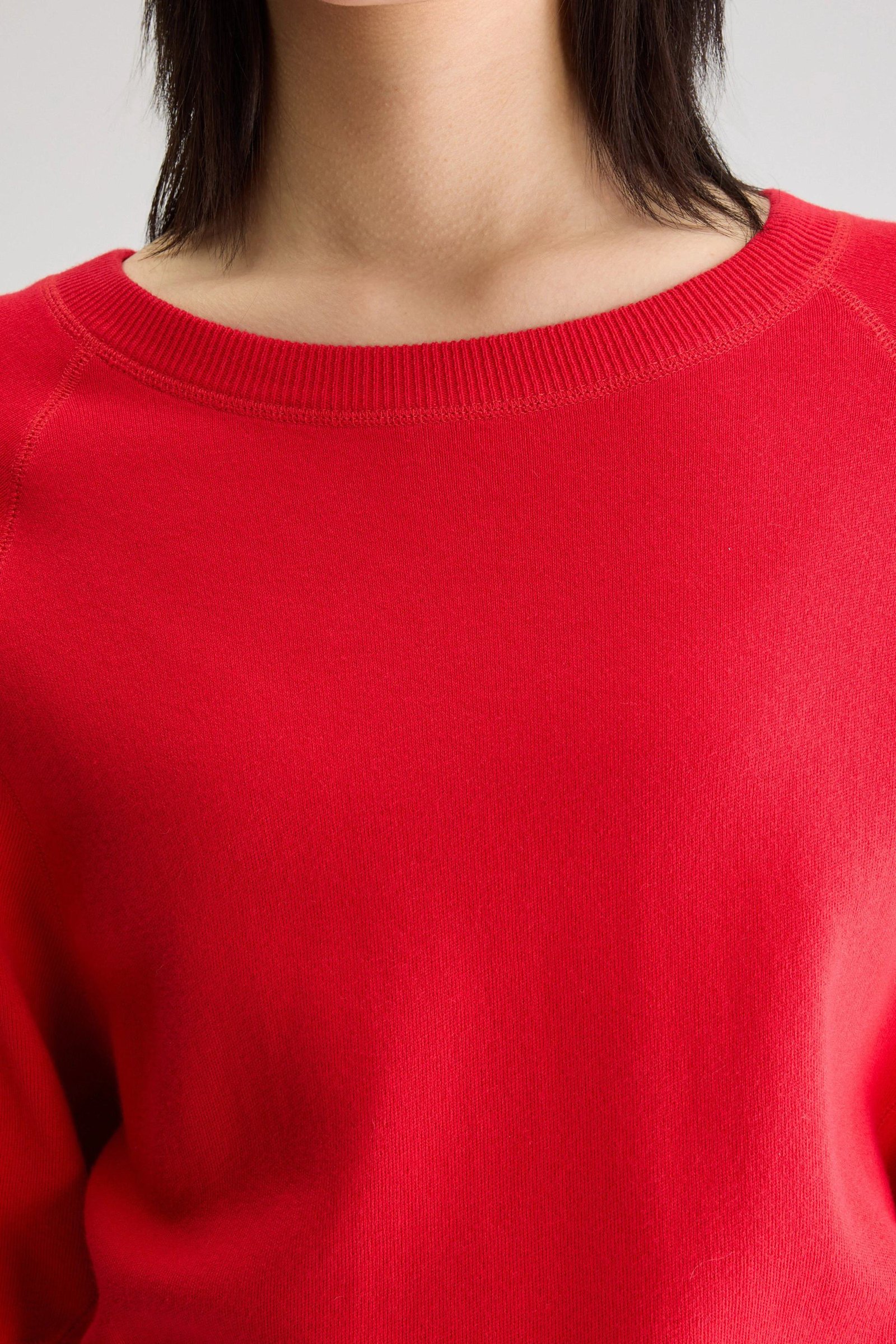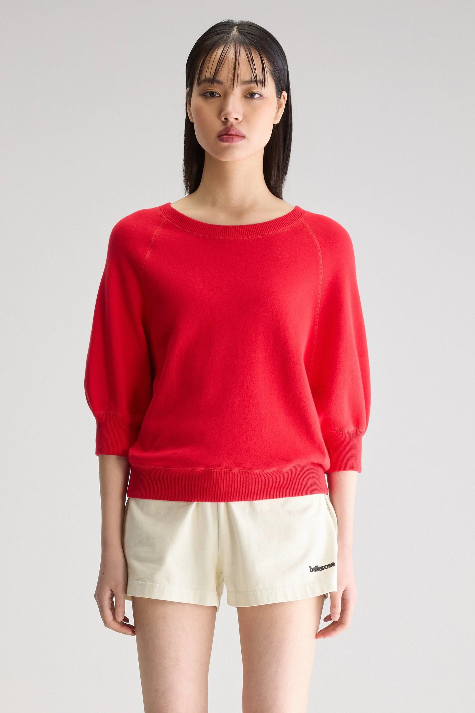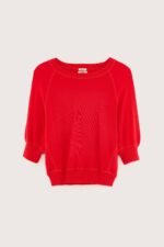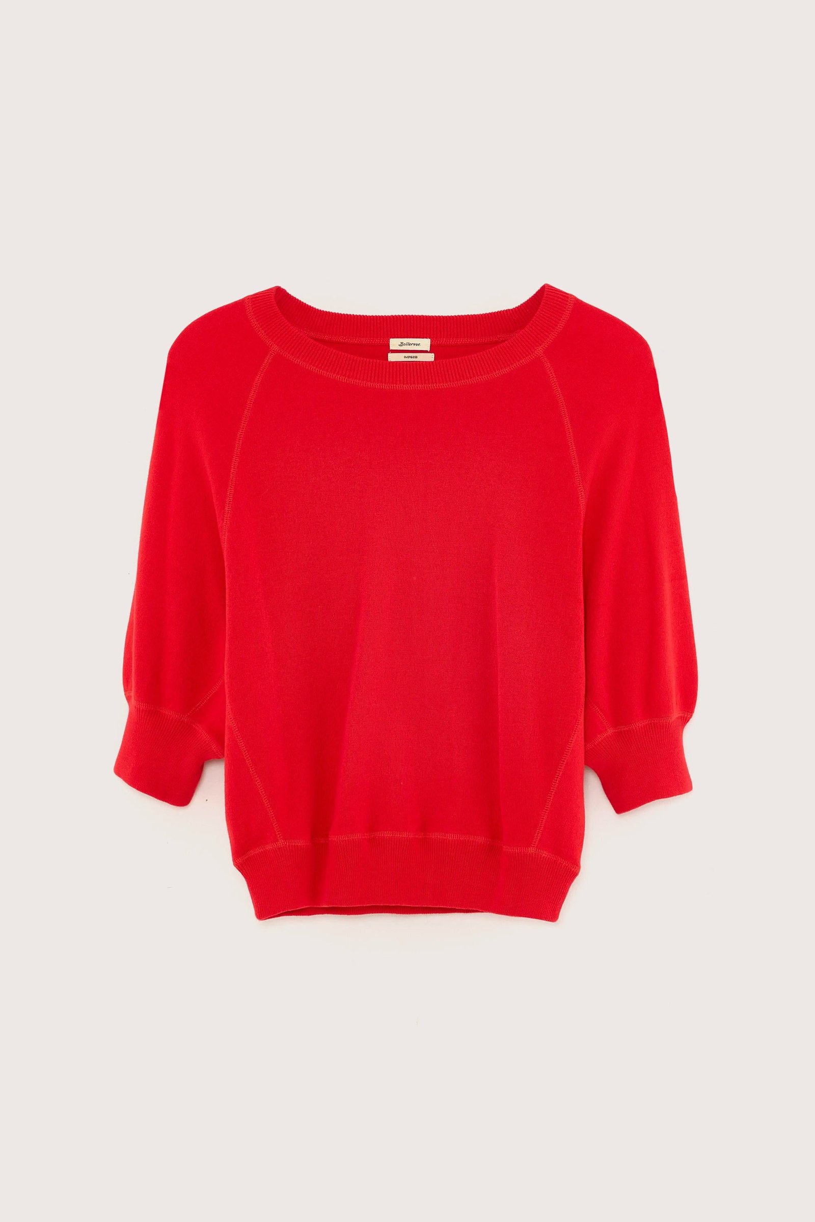 Oversized crewneck sweater with 3/4 sleeves and ribbed edges in crimson red cotton.