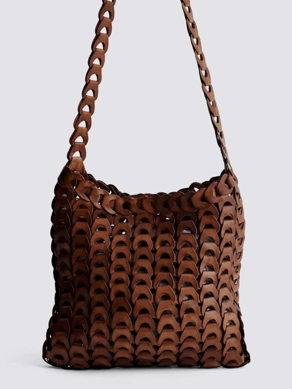 The “ns link tote” showcases innovative design and sustainability, crafted from surplus recycled buffalo leather that’s booth supple and eco-friendly.This tote features unique straps that form Leather medallions, Linked Together like a chain, Creating A distinctive, textured look.Versatile in its styling, it can be worn over the should or as a crossbody, adapting effortlessly to your needs.