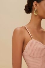 The Pink Blush Corset Top by FARM Rio enchants with its gentle sweetheart neckline, evoking a tender charm. Its textured fabric flows with precision into a flattering silhouette, while the delicate bead-embellished straps add a touch of whimsy. The soft rosy hue embodies a playful elegance, making it a piece that effortlessly bridges sophistication with a hint of carefree spirit. Perfect for any sunlit gathering.