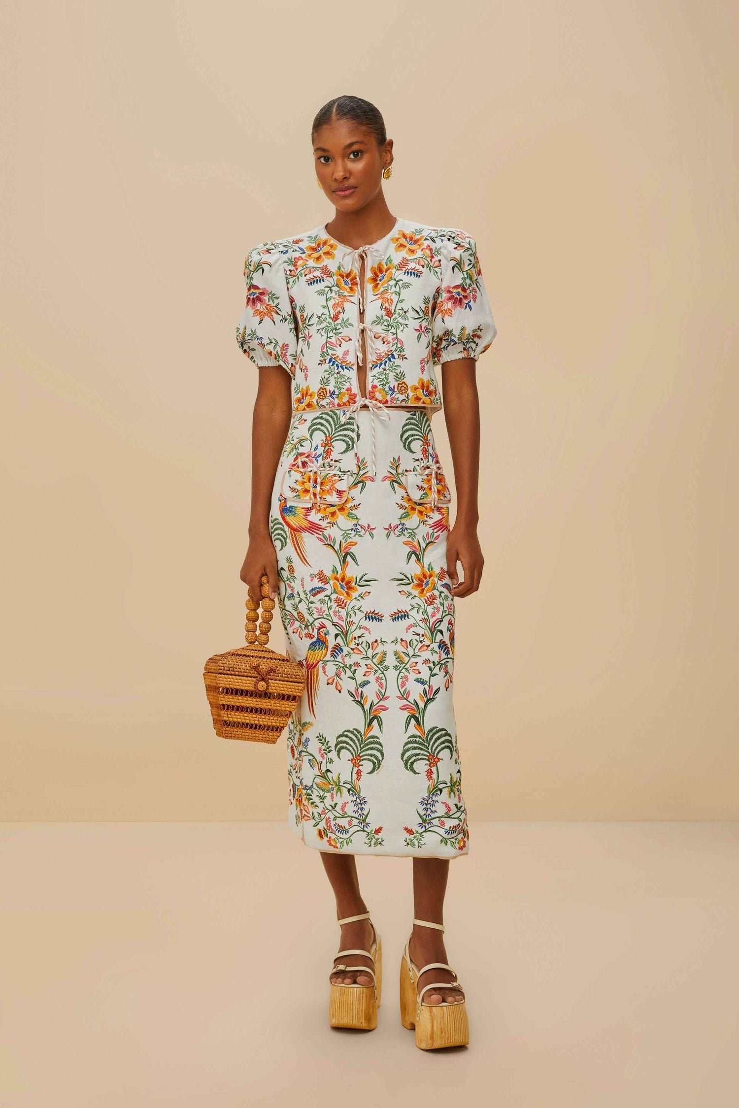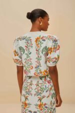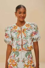 Discover the Off-White Delicate Forest Scarves Euroflax Premium Linen Blouse by FARM Rio. Crafted from responsible materials, this enchanting piece boasts vibrant floral patterns and a charming round neckline. Delight in the voluminous puff sleeves and the playful front ties that exude effortless elegance. Immerse yourself in the rich tapestry of colors and let the delightful design carry you through any occasion with grace and style.