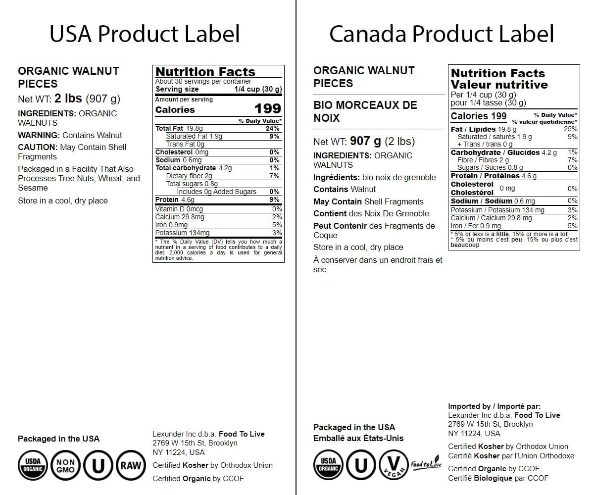 - ✔️HANDY BAGS, MADE IN USA: Organic Walnut Pieces are proudly grown and packaged in the USA. These nuts are packaged in handy resealable Food to Live bags that are super convenient to store.