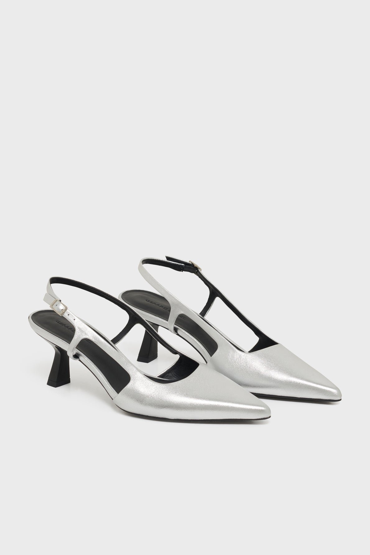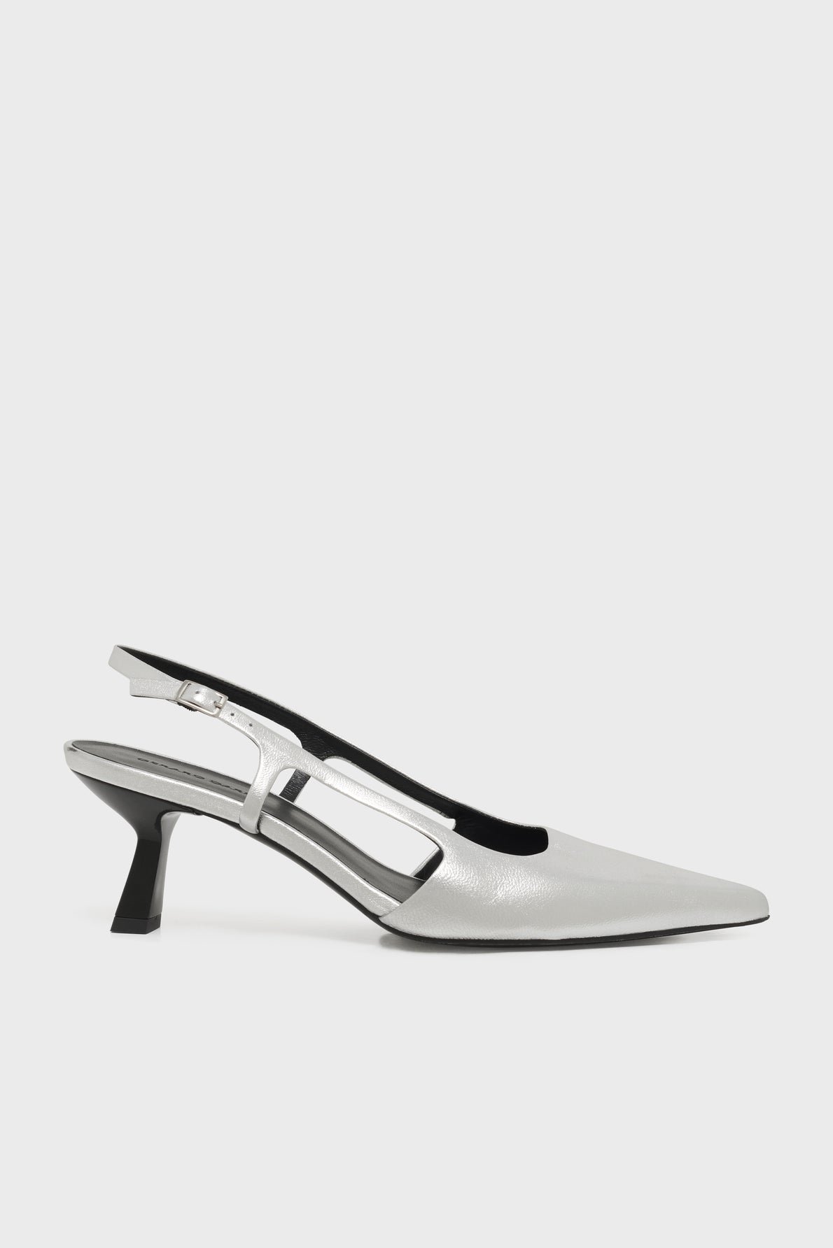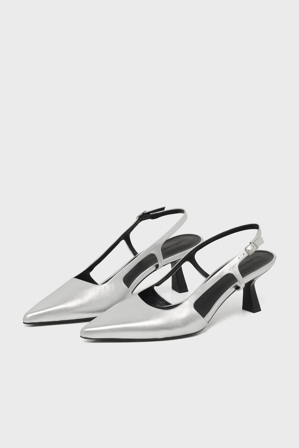 GLAM’ CHIC LOOK FOR THESE SILVER LEATHER SLINGBACK PUMPS WITH POINTED TOES. WEAR THEM IN SOPHISTICATED MODE, OR ROCK THEM WITH JEANS OR SLIM JEANS.