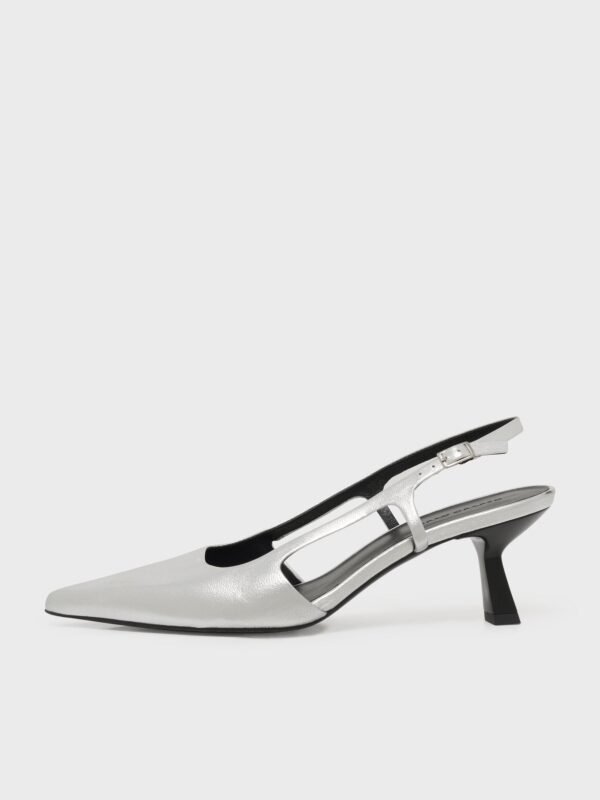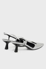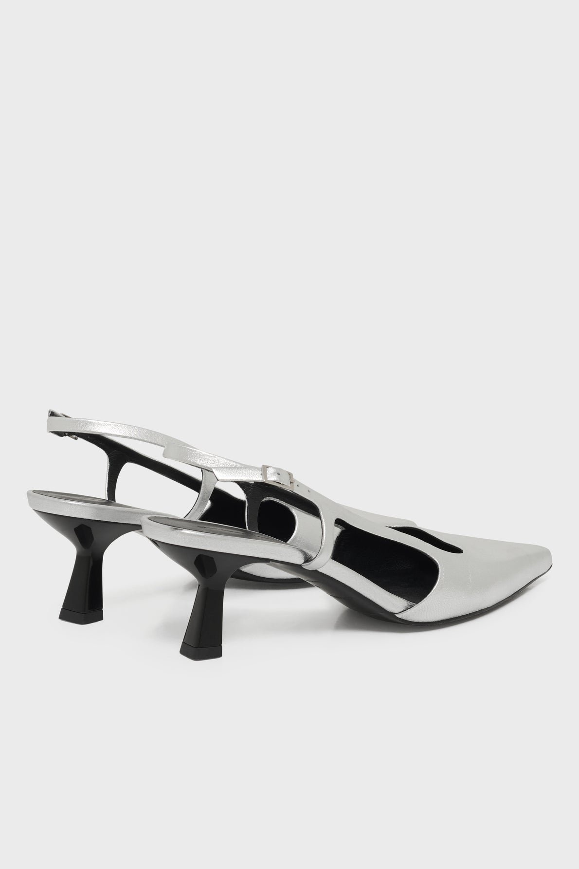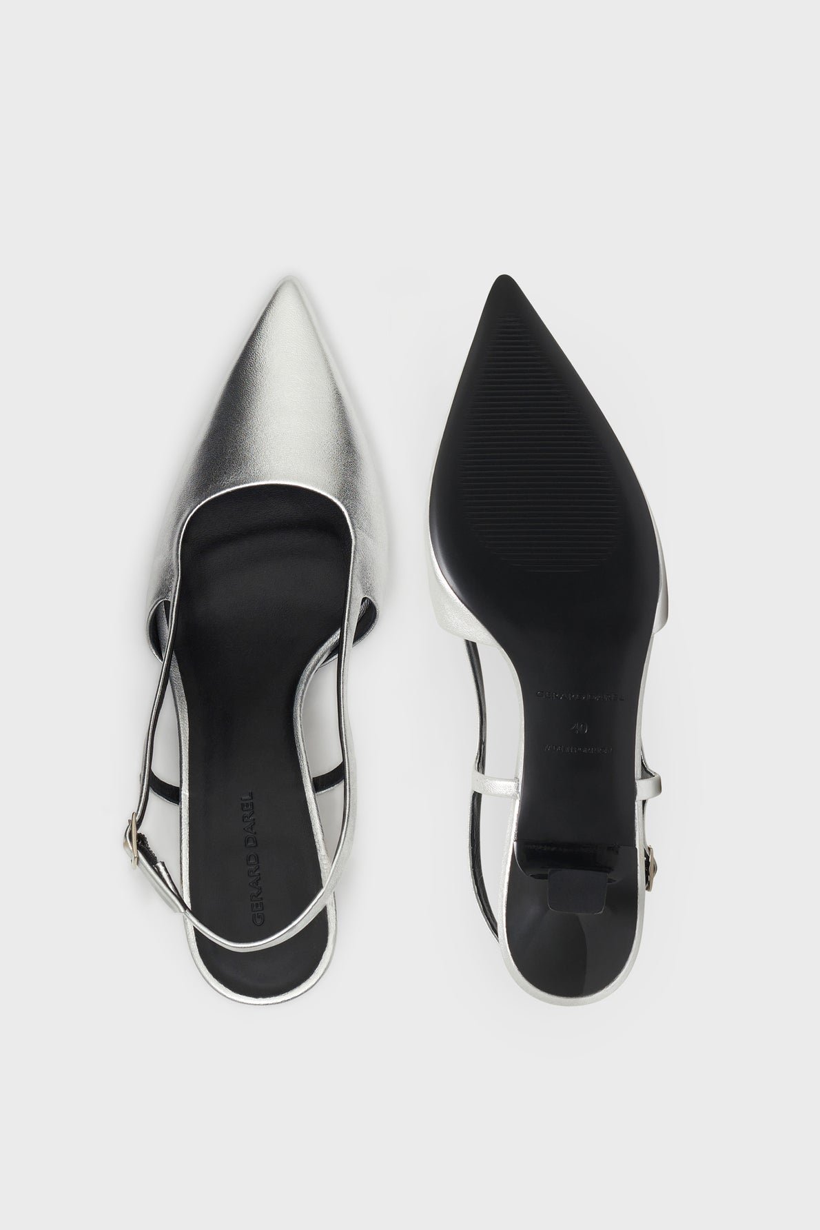 GLAM’ CHIC LOOK FOR THESE SILVER LEATHER SLINGBACK PUMPS WITH POINTED TOES. WEAR THEM IN SOPHISTICATED MODE, OR ROCK THEM WITH JEANS OR SLIM JEANS.