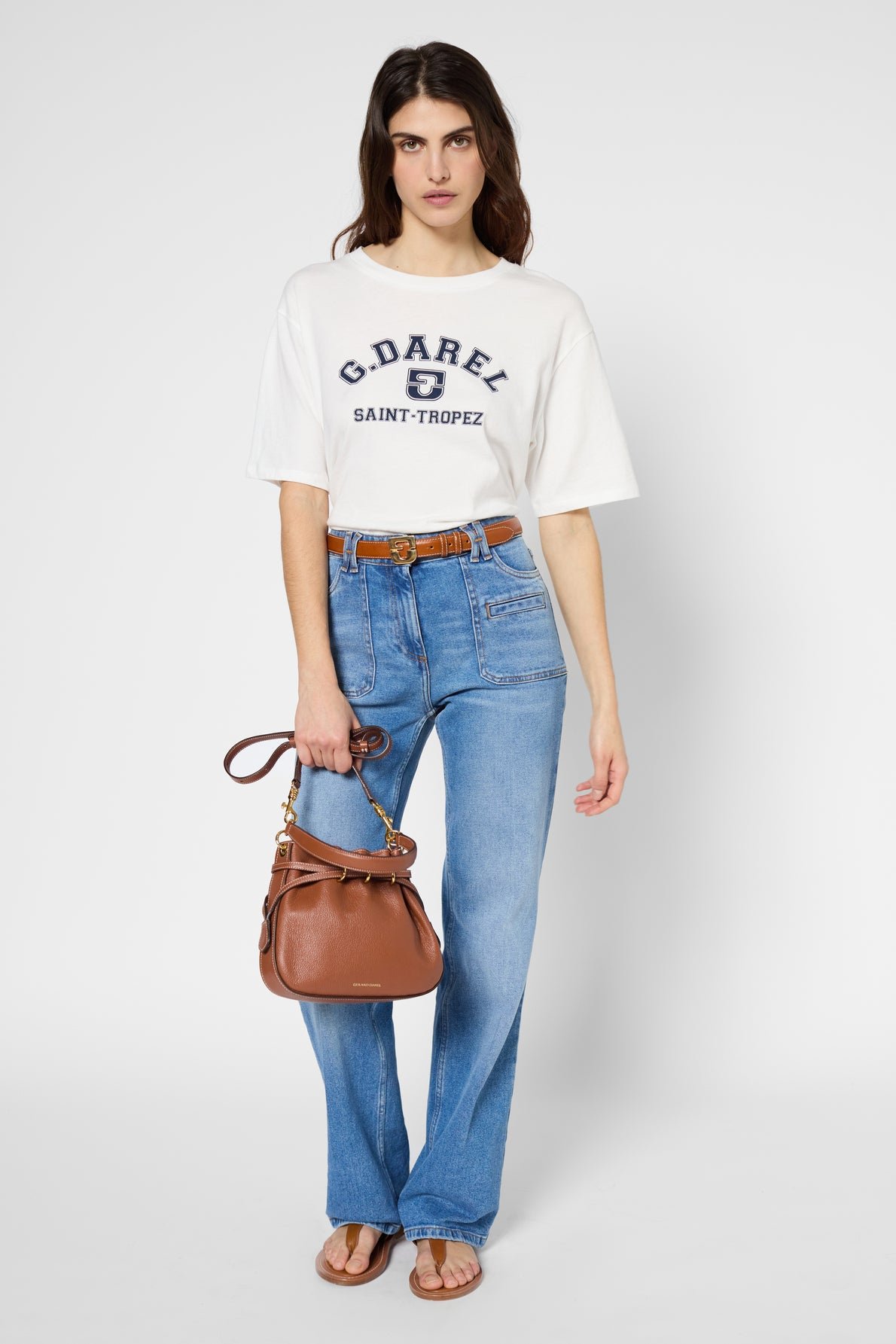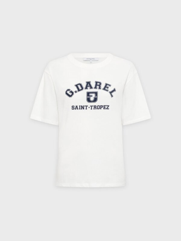 WHITE COTTON T-SHIRT WITH LETTERING.