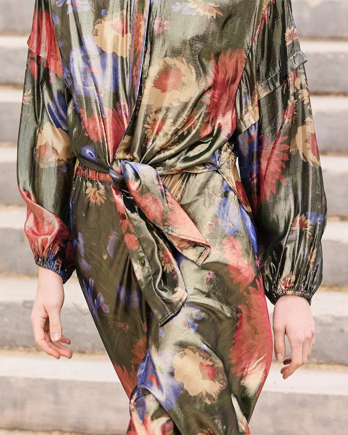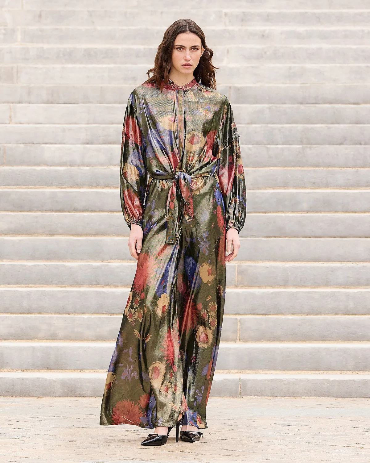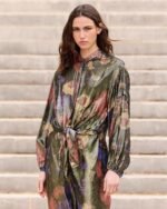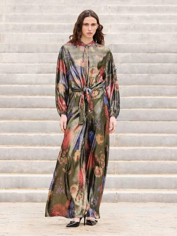 Fall for this lurex voile shirt, enhanced with a delicate floral print that catches the light and adds a touch of charm.