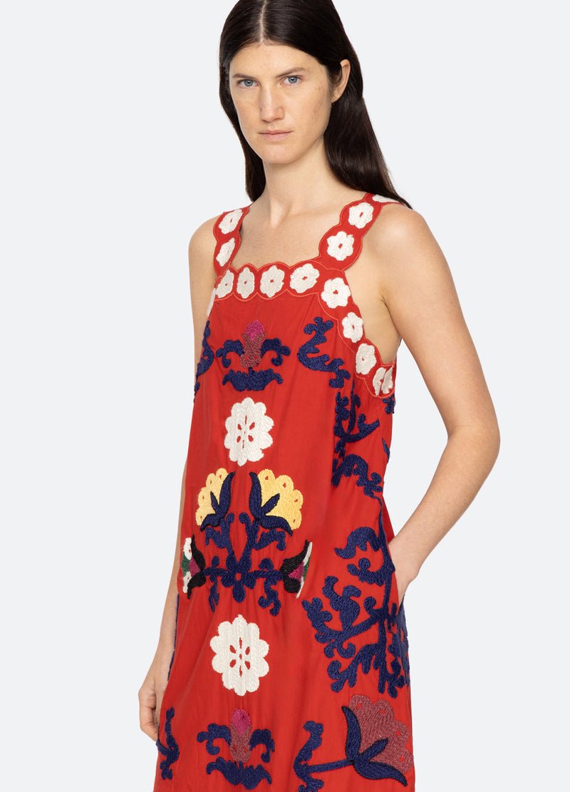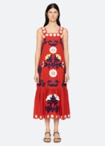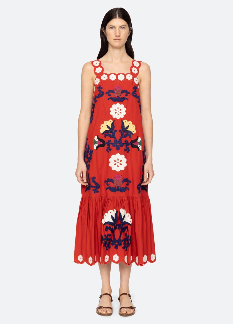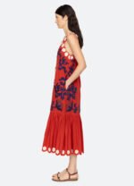 The Catrine dress is a beautifully embroidered midi dress featuring delicate floral detailing throughout. Designed with a flattering silhouette and an invisible back zipper for a seamless fit.