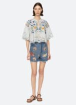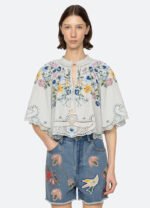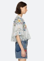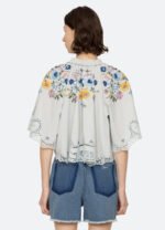 The Celia short sleeve top features a harmonious blend of elegance and intricate craftsmanship. This short-sleeve top showcases detailed floral embroidery throughout, complemented by delicate lace accents. Designed with a cropped silhouette.