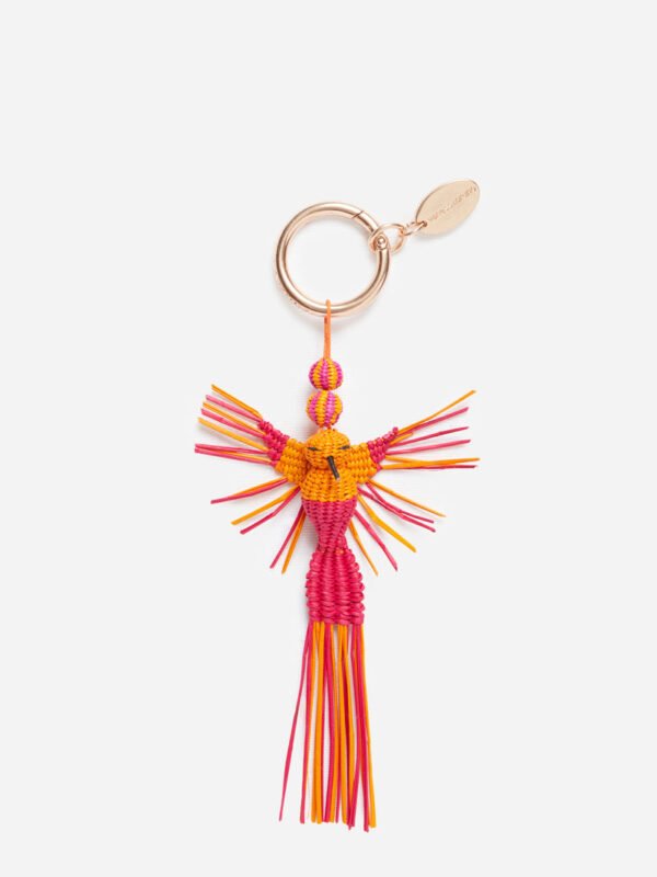 Inspired by traditional craftsmanship, this hummingbird charm is entirely handmade from Iraca palm. A 1 lucky charm, it adds an exotic and colorful touch to your accessories. Its refined weaving and vibrant colors make it a unique item, perfect for personalizing a bag or keychain. A chic and bohemian detail that brightens up your everyday life.