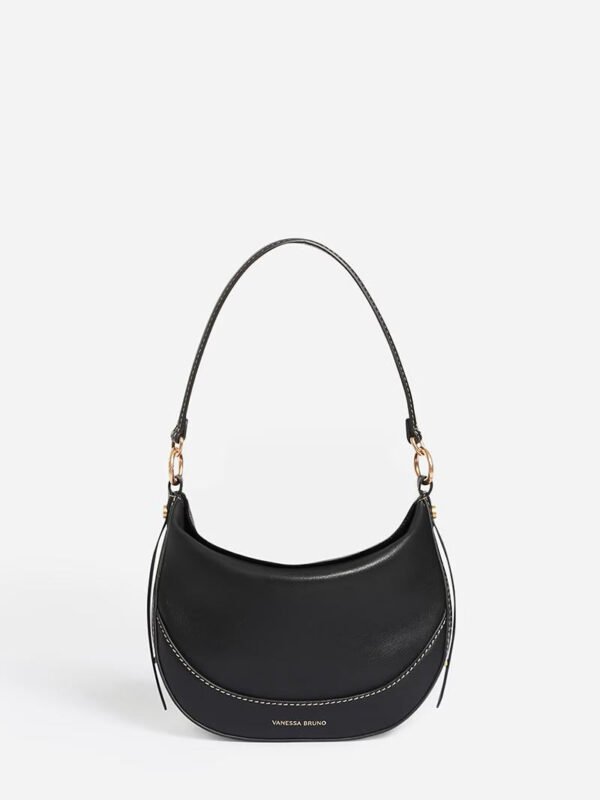 Smooth leather half-moon bag. Carried by hand, cross-body or on the shoulder.