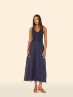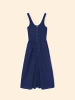 Best of Both Worlds. Fenix is new this season in our classic lightweight woven cotton poplin for a lived-in look and feel. This sleeveless maxi dress is fully lined and features a button-front, contrast cotton rib knit top, full skirt, and side seam pockets.