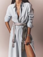 Forever Timeless. Bowen is made in our lightweight, soft-woven cotton chambray in a classic light blue wash. Inspired by our bestselling Boden Dress, this maxi A-line shirt dress features a spread collar, box pleated back yoke, side seam pockets, and a braided belt.