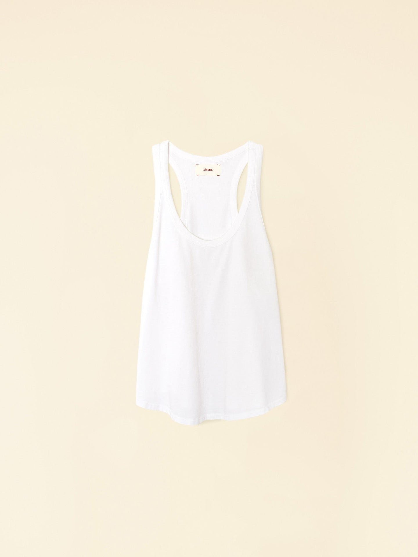 Back to Basics. Jett is back this season in our ultra-soft cotton jersey. This racerback tank features wide self-binding along the neck and a curved high low shirttail hem. Pair back with the Crispin pant for ultimate ease and comfort.